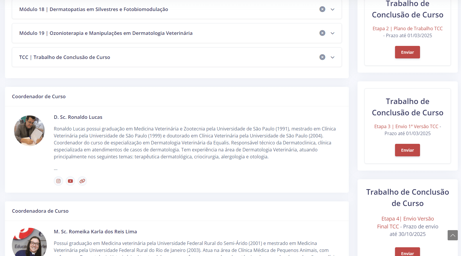 - Calendário acadêmico (com as datas de provas e recuperações, fóruns, eventos e início de módulos)